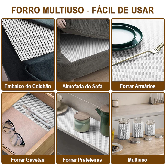 SUGESTÃO DE USO: Prateleiras e gavetas em cozinhas, quartos, closets e etc.