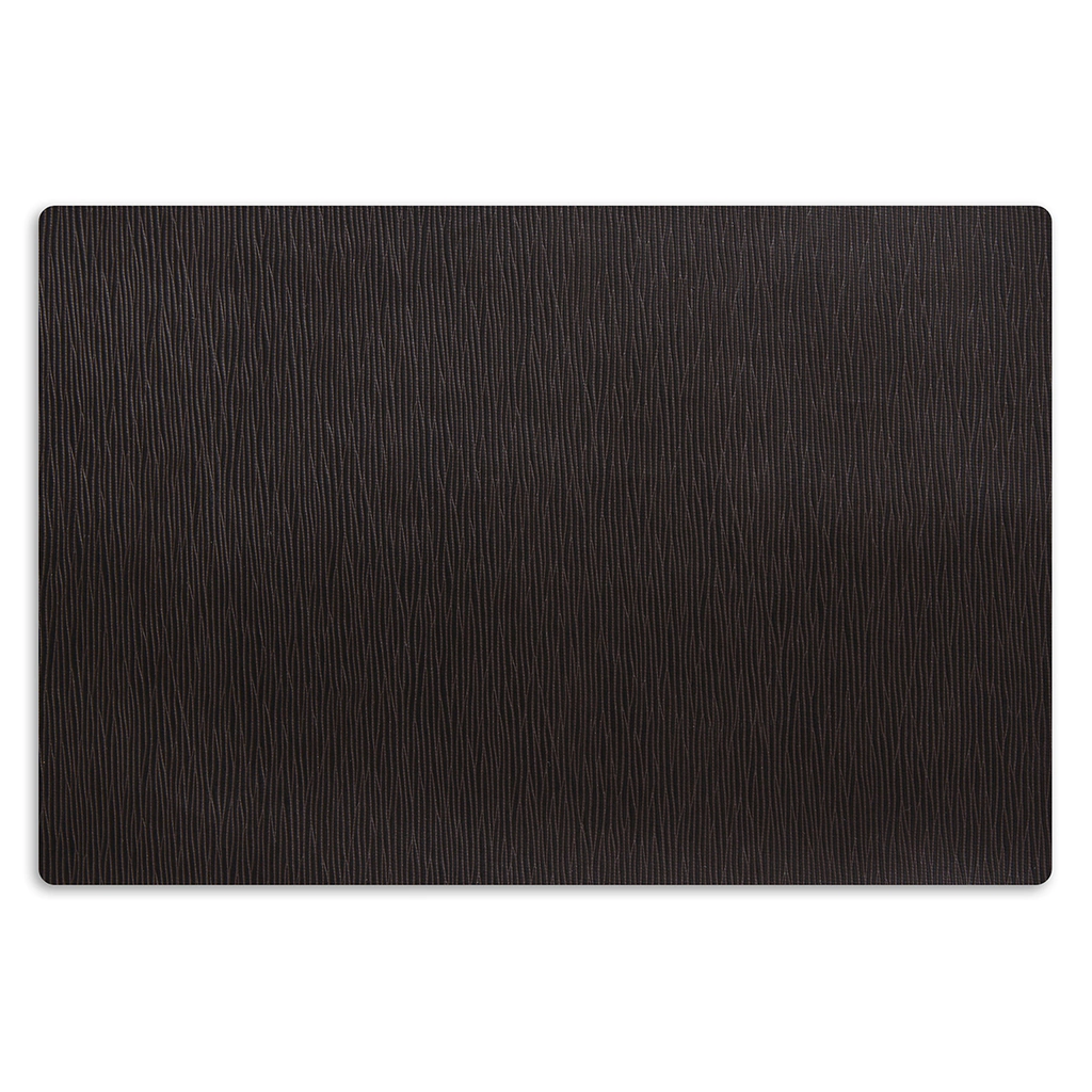 Possui gravação com riscos ondulados e por baixo possui uma trama de poliéster.