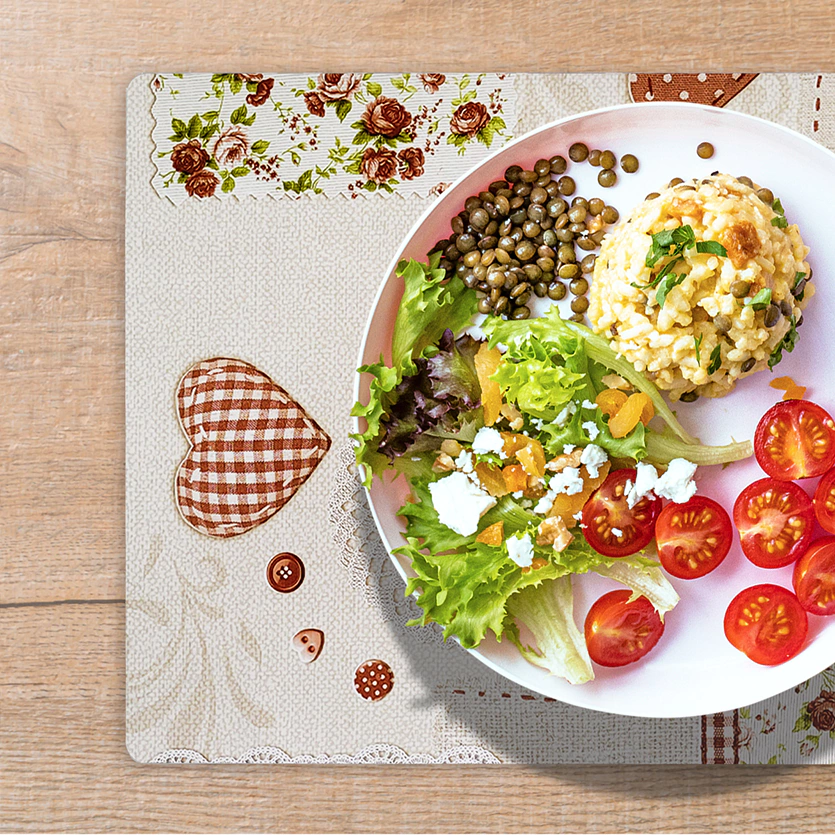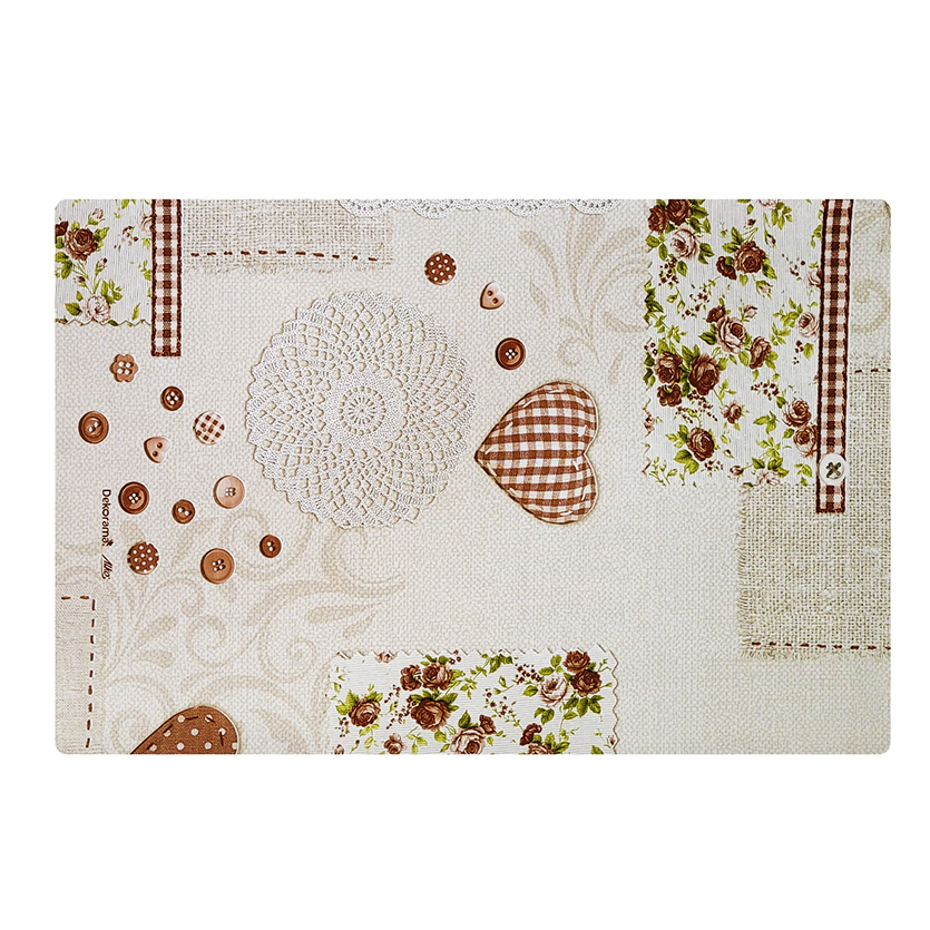 JOGO AMERICANO ESTAMPADO CORAÇÃO RENDA BEGE – PVC